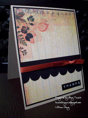 I recently picked up the Basic Grey Recess 6x6 pad and have discovered some gorgeous prints. The last day of school for my kids is a week from tomorrow so I'm busy creating the perfect cards for my son's 2 teachers and finishing up their gifts..more to come on that :) My daughter is finishing up middle school and will be going into junior high so I'm off the hook for her teachers although I did offer...I think the response was "rolling of the eyes"...