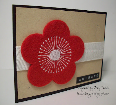 My son went through all my individual stamps and picked the Hanko Designs "Singing Crane" image and wanted the word "peace". This is what I came up with...I originally started my design wth bashful blue and black...when I was looking through my Basic Grey Scarlet Letter paper pack, I knew that I had to use the red pattern designer paper....I used my stampin' up black marker on the peaceful wishes stamp and just inked up peace...