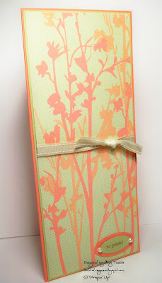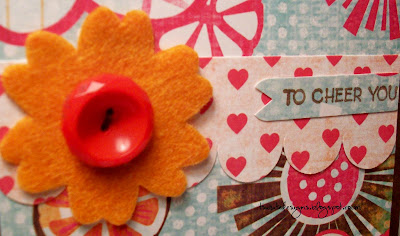 I'm horribly behind on some cards...actually sympathy ones. They have got to be thee hardest cards to make...I'm non-traditional in certain card making projects. Can you believe that this "Sassy Cheer" card is a sympathy one? Yes, it is nice and bright and cheery....what could be better? It definitely depends on the recipient...and this is going postal today for a young blogging buddy of mine that recently lost a family member. I'm crossing my fingers that when she opens up the envy that this card will make her smile...