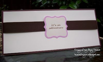 This is a "simple dimple" card as Angie would type...The "it's an adventure" is a die cut from my Making Memories Hul.la.ba.loo line kit. I love the pop of pink...now who doesn't love pink?!