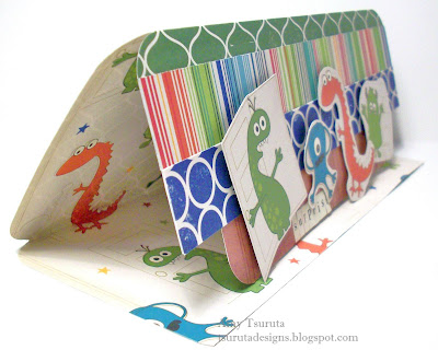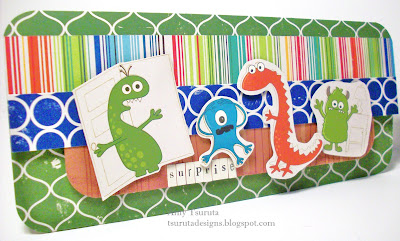Okay, anywho's....What a fun birthday boy card...October Afternoon's Night Light Louie which I picked up at Limelight. The designs are fabulous...1 side is fun and the other has great graphic-y patterns...love the stuff. I think that Ms. Lauren is going to love this monsta card :) Those little guys are on glue dot pop dots..hope it doesn't scare my 'lil guy...