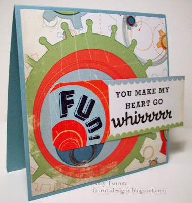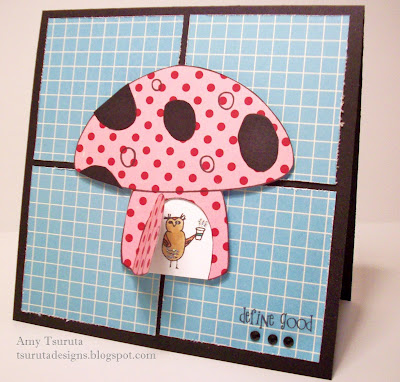 Here's my take on Mandy's sketch:It's a nice combo of Amy Butler and October Afternoon papers along with Unity and Impress stamps. Those cute Unity mushies are on glue dot pop dots...