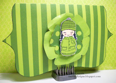 Darling! Love the shades of green and how the stripes on her woolen hat mirrors the stripes on the pattern paper! Super cute!!!! ♥♥ Kay