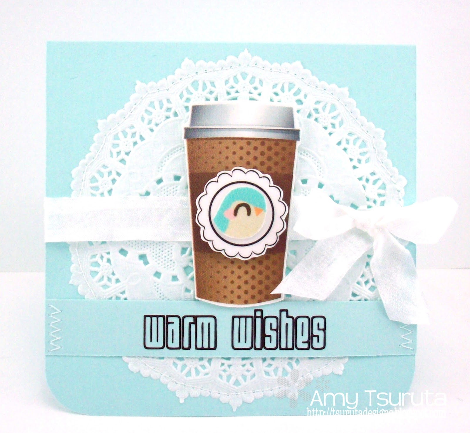 Oh Amy, you know I am loving your card. That beautiful shade of blue, the doily and a cup of coffee.