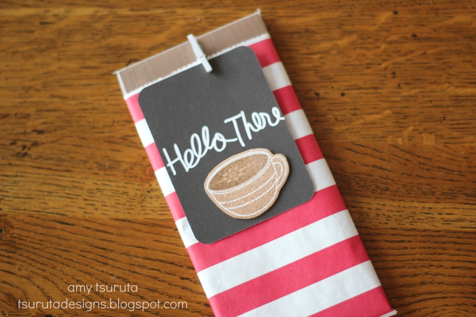 bag: whisker graphics horizontal stripe middy bitty bag stamps: reverse confetti/be a barista ink: zing white, Fresh Ink Chocolate misc: project life card, cork, white clothespin, target $ spot note pad