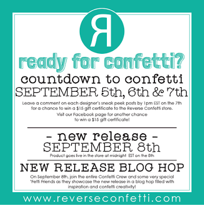 I can't wait to hop around and see what my teamies designed! Leave a comment on all the sneak peeks post for each designer. Comments will close at noon CST on September 7th and there will be a $15 Gift Certificate for one blog commenter and also one FB commenter. Make sure you pop over to the Reverse Confetti Blog for all the details!