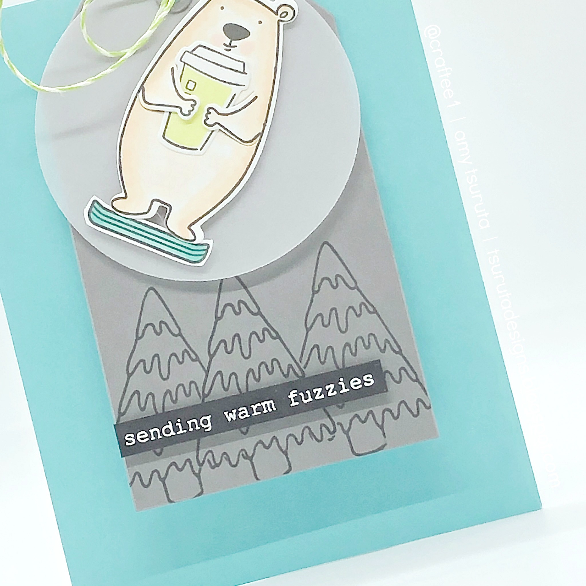 So there you go, the All Inside bear is holding tightly onto his latte from Everyday Doodles & Punnies while on his Lawn Fawn Yeti or Not snowboard.