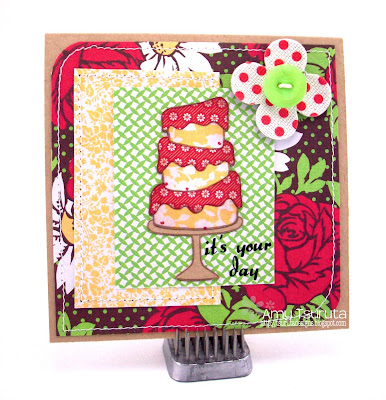 Next up is a pocket card...the kraft base is 6 x 6...all the Crate paper is from the wonderfully generous Piali {thanks sista!!!}... Gotta love that I have matching thickers...I recently picked up some Jenni Bowlin Canvas flowers...stacked a PTI & DeNami Design button on the bloom...